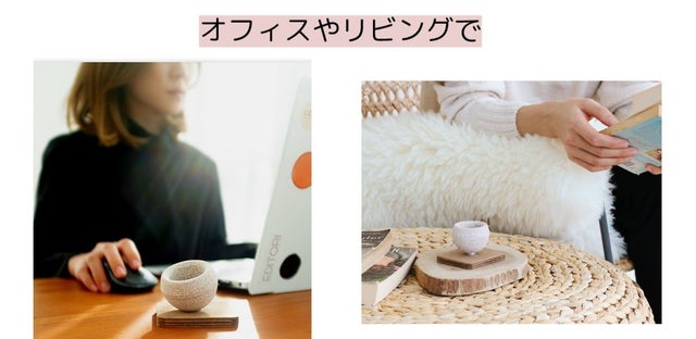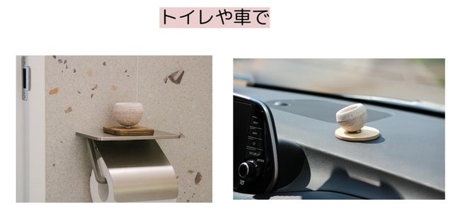 フレグランスオイルが染み込んだ珪藻土ディフューザーは様々な場所でお使いいただけます。