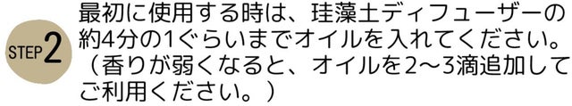 A.「最初に使用する時は、珪藻土ディフューザーの約4分の1ぐらいまでオイルを入れてください。※香りが弱くなると、オイルを2~3滴追加して使用してください。」