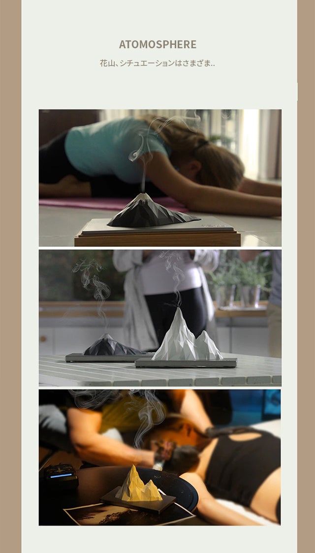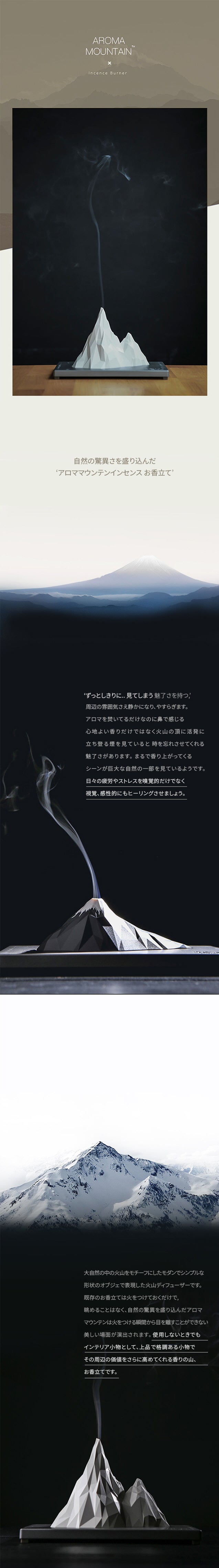 アロママウンテンはお香に形を吹き込み、ユーザーのアロマライフをより豊富で、リラックスできる視覚的な体験を贈ります。