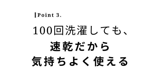 また、洗濯乾燥を繰り返しても速乾が落ちにくいため、生乾き臭がしにくく快適な使い心地を保ちます。
