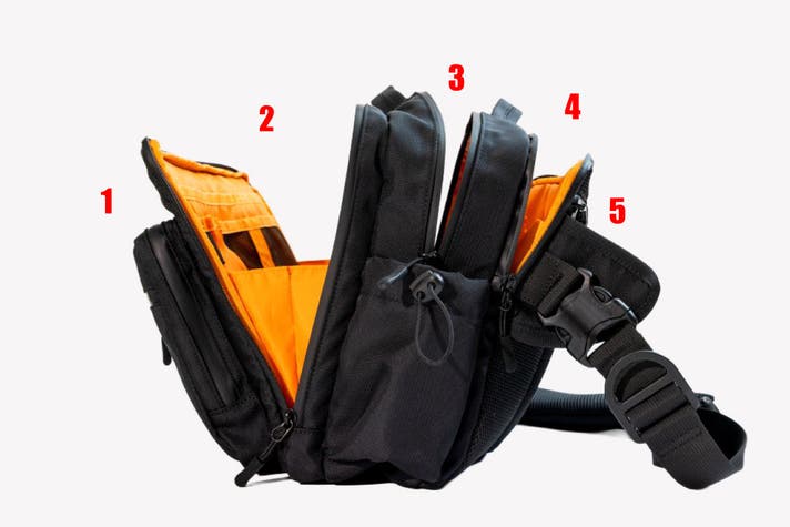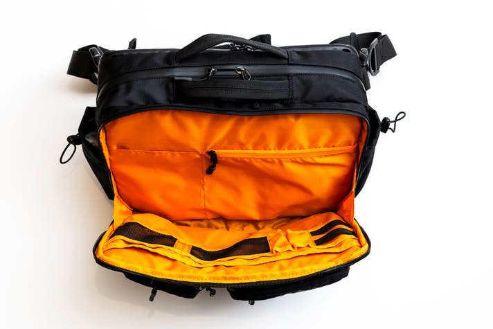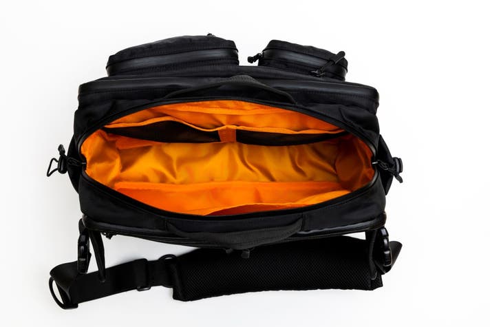 フロント部分の1stエリアには4つのZIPポケットがあり 全て止水ファスナーを採用しております。 スマホや鍵などすぐに取り出したいものを収納するのに便利です。