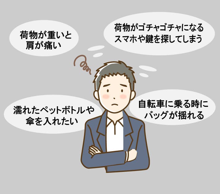 クロスストラップでバッグを体に安定させる事で片方の肩の負担が軽減されます。
