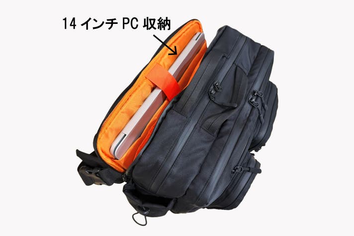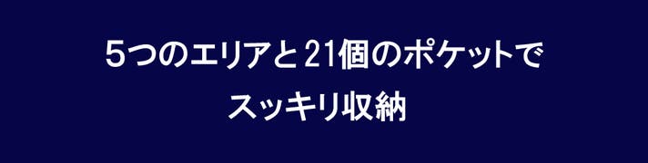 - 5つの収納エリアと21個のポケットで小物も一目で取り出せる構造!14インチPC収納可能