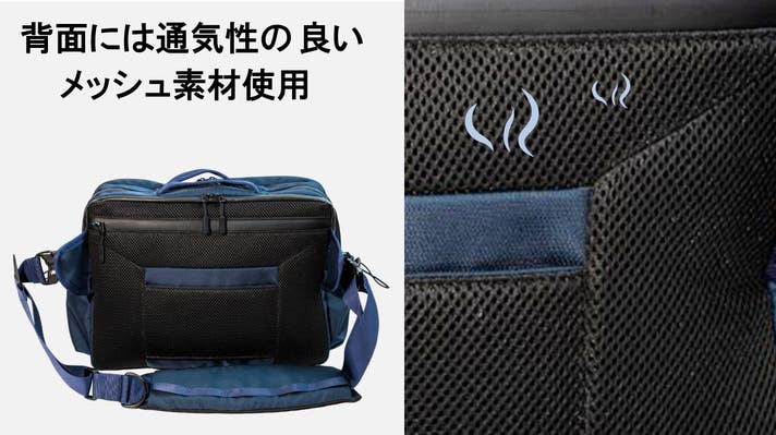 海外旅行時のパスポートや、他の貴重品の収納などに使用できます。 また背面素材は通気性の良いメッシュ素材です。 風通しがよく、熱や湿気がこもりにくい為、特に暑い季節や長時間の使用も 快適です。