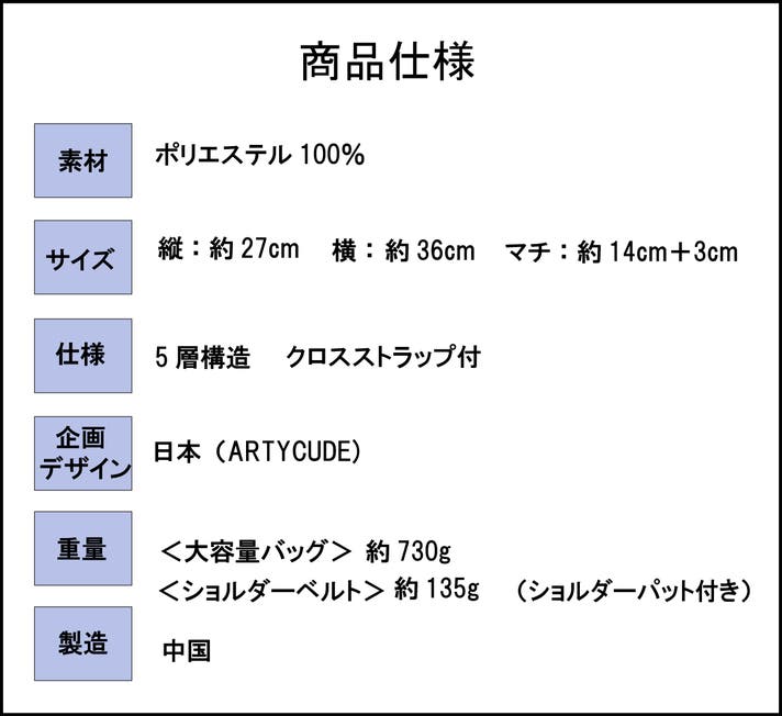 今回のバッグは収納、整理力とプラスαの機能性にいちばんこだわりました。 5つのエリアと21個のポケットで驚きの収納力。細かなアイテムもスッキリ 整理できる大容量バッグです。3WAY仕様でショルダーバッグ、ボディバッグ、 手提げとシーンに合わせて持ち方を自由にチェンジ。通勤、通学、旅行、デイリーまで これひとつでスマートに対応します。 肩の負担を軽減する、ショルダーパット、クロスストラップなど便利な機能も 標準装備しております。
