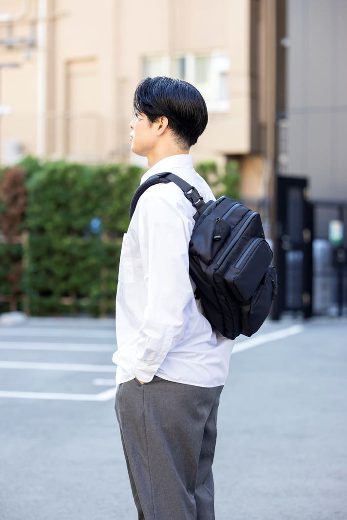 全てのファスナーにおいて止水ファスナーを採用しています。 急な天候変化にも大切なスマホやPC、ガジェット類などを慌てずに収納できます。 各エリアのファスナーは横からも縦からも開閉しやすいWファスナーにしました。