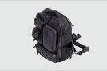 バッグ正面には大小6つのポケットを装備。 すき間から水や雨が入りにくい止水ファスナーを採用しています。