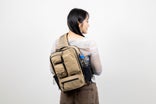 背面部分にはセキュリティポケットがあります。海外旅行中のパスポートや財布など貴重品の収納にピッタリです。 背面の素材は厚みのあるクッションを使用することで、肩への負担を軽減し長時間の使用もラクラクです。
