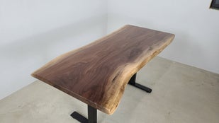 ブラックウォルナットの一枚板 電動昇降脚セット 商品番号bwl500