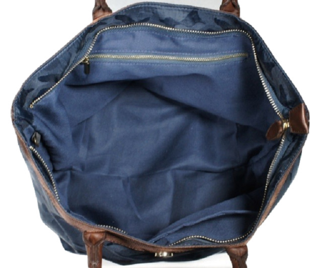 内部は外側生地と合わせた色の内布が付いており、 大小のオープンポケット、貴重品収納に便利なファスナーポケットもあり、 ポケットが合計3つ!
