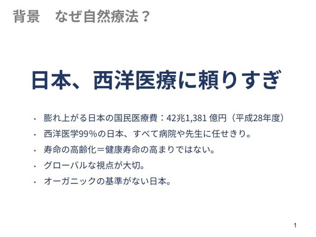 私たちは「自然療法を第二の選択肢として受け入れられる世の中を創りたい。」と考えています。