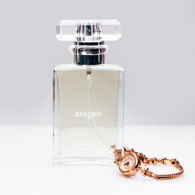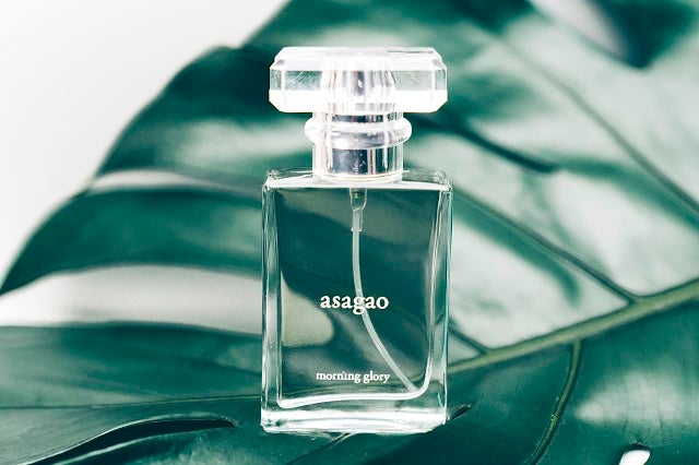 アロマテラピーブランド【asagao】の人によって香りが変わるオーガニック香水と同じブレンドで作成した衣類用スプレーをお贈りします。