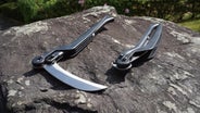 一秒で展開・収納が可能です。よくある折りたたみの鎌は刃をつかんで折りたたむので、誤ってけがをする心配がありますが、この鎌は刃に触ることなく収納することができます。