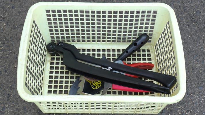 道具箱の中に鎌が入っていると、道具を取り出すときにけがすることも。刃が収納されているとその心配が少なくなります。