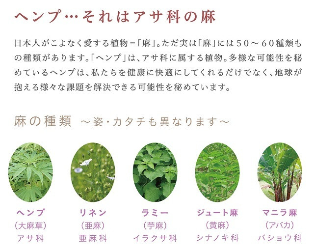 日本で一般的に呼ぶ「麻」には、50~60種類もの種類があるのをご存知でしたか?