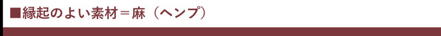 また、「麻」は驚異的な成長力をもつ植物でもあります。この麻をモチーフにした文様(=麻の葉文様)は子供の成長を祈るため、また、魔除けとしても何百年と使ってきた歴史があります。