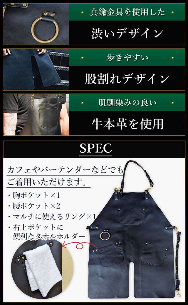 “THE漢のマルチ本革エプロン”ASHAEN“(アシェン)の仕様