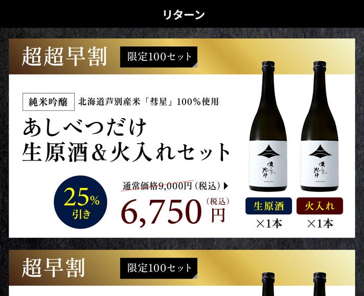 【超超早割 25%OFF 限定100本】あしべつだけ 生原酒&火入れセット