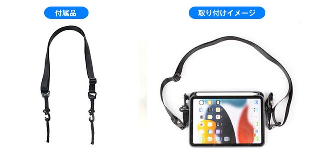 持ち運びに便利なショルダーベルトが付属。ベルト長は約110mm~約164mmまで長さ調節できます。利用しない場合、取り外すことも可能です。