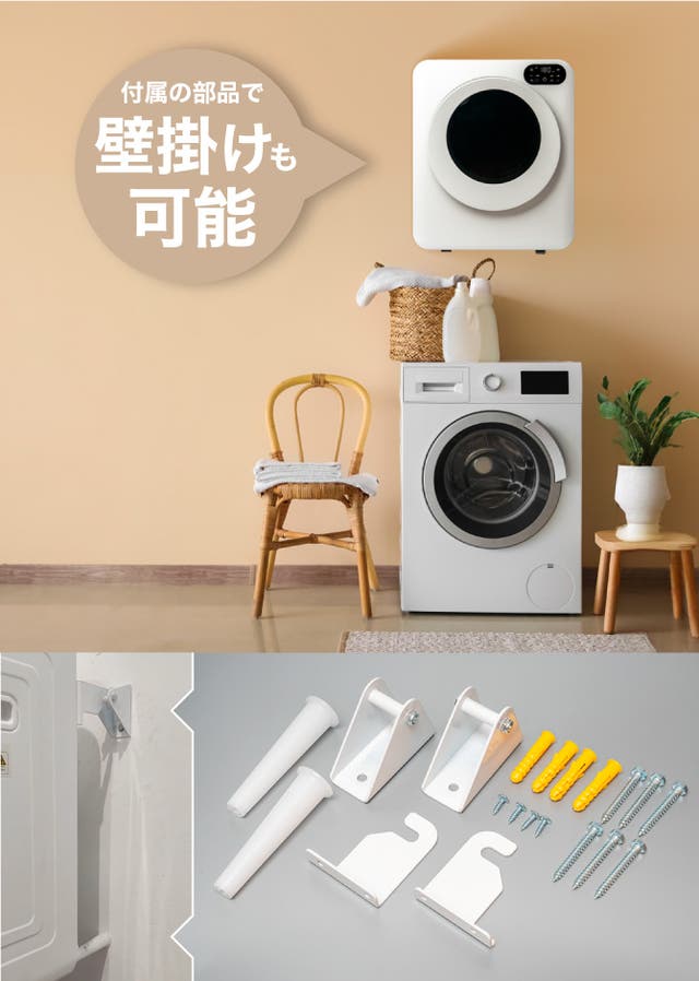 この小型乾燥機は、わずかなスペースを利用して設置可能。床面積を圧迫することなく、お部屋を広々と使えるようになります。