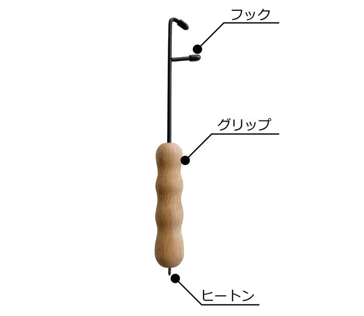 - コンパクトな形状とフックの角度で、ズボンなどを介助なしでも上げ下げできるよう考案!