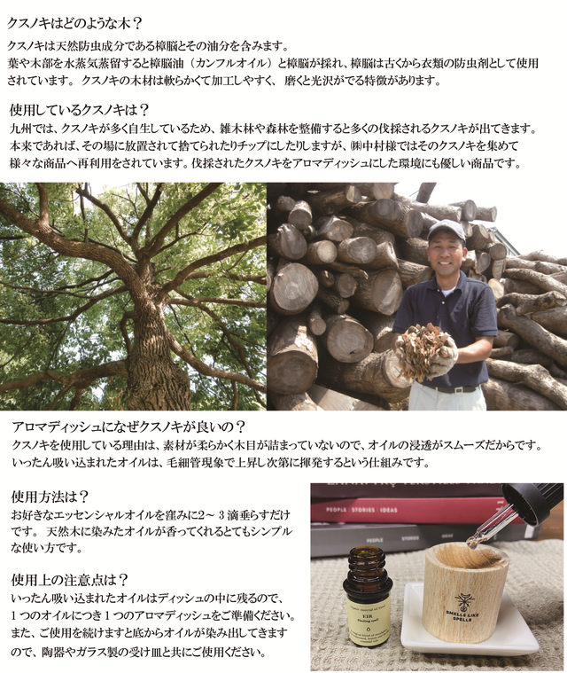 - 森林整備で伐採された日本のクスノキを有効利用した専用のアロマディシュとのセット企画!