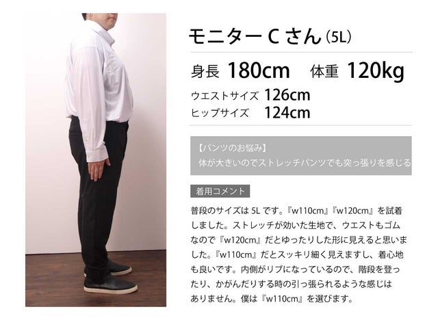 5Lモデル着用サイズ:w120cm(身長:182cm/体重:120kg)