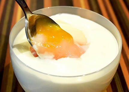 なんと、プリンに温泉玉子をのっけて食べるんです。
