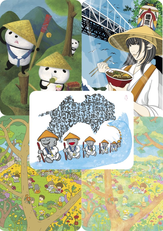 ▼5000円コースのA2ポスターとお遍路ポストカードは、あたらくトクシマのオリジナル作品。