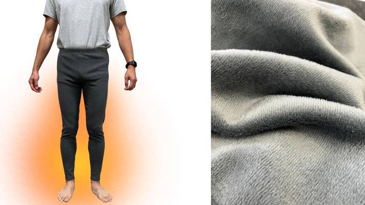 伸縮性に富み窮屈感がなく、たっぷりとした起毛の空気層によって保温性が高い素材です。