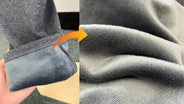 この素材は、裏面の特殊な編地に毛足の長い起毛加工を施しています。