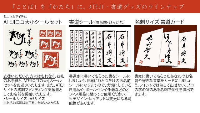 このATEJIのサイトを通じて、海外にさまざまな日本文化・伝統を発信していきたいと考えています。また今回のプロジェクトでは、日本の方々にも、自分の名前や好きなことばを書道家に格好良く書いてもらい、更にそれを壁紙やシールなどの「かたち」に残して楽しんで頂けるサイトにアップデートしたいと考えています。
