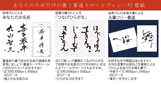現在は、書道家「雪書ゆき」さんに、選んだ自分の名前を書いてもらえる、書道画像データサービスを公開しております。
