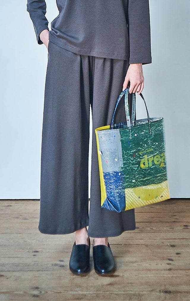 なかでも、2004年から10年間、ビエッラという自然豊かな田舎町を拠点とする「hLam(ラム)」というピエランジェロ・ダゴスティン&グン・ヨハンソン夫妻が手掛けるブランドで働いた経験が、現在の思想や生き方、ものづくりの指針となっています。アルプスの南麓から流れてくる、チェルヴォ川の澄んだ水。アトリエと住まいが隣接しており、畑ではみずみずしい無農薬野菜が育ち、さまざまな果実が実っていました。誰かに誇示するためではなく、自分自身が幸福を感じるための、着心地の良い服づくり。食やインテリアを独自の美意識で整え、クリエーションし、自然体で楽しむ生き方。そんな衣食住とものづくりが乖離することなく一体化した夫妻のありように感銘を受け、装いという一部だけではなく、自然と共生するライフスタイルそのものを提案することを考えるようになりました。ぜひ、リサイクルバッグを手に取っていただき、アートにふれたときのような驚きやワクワク感とともに、都市に住みながらも参与できる、新しいサスティナブルのカタチを感じていただけたらと思います。