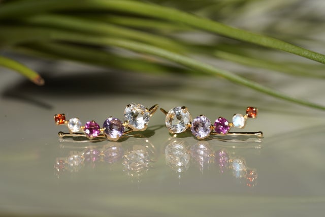 【Makuake特割】K18天然石ウェイブ5粒ウォームカラーイヤークリップペア