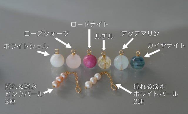 ジュエリーで人気の高いパールや天然石を使用してみました。