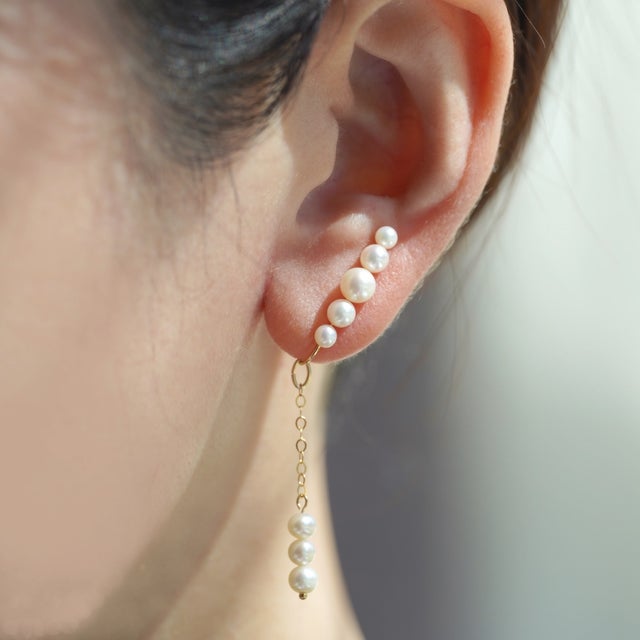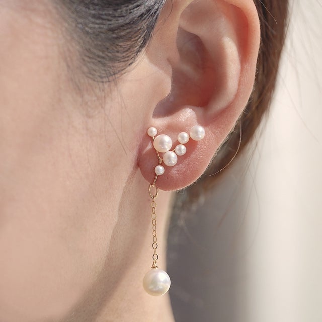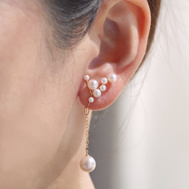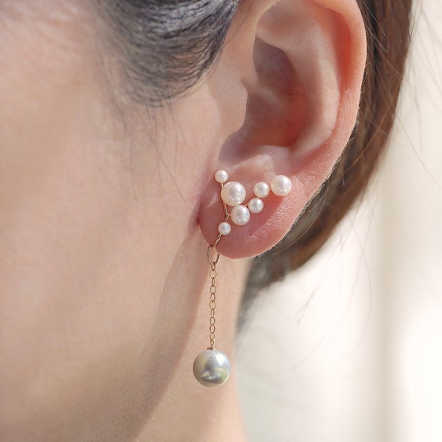 【Makuake特割】K18淡水パールウェイブ5粒イヤークリップ片側