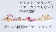 耳に穴を開けなくても良いのはイヤリング、イヤーカフですが、イヤークリップは文字通り、ジュエリー素材にバネ性のあるクリップ部分を付けて耳を挟み込んで装着するスタイルです。