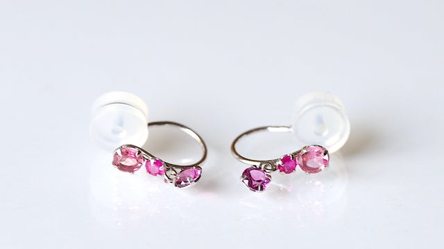 3石が小さくまとまっていますが、耳に着けるととても目立つ色合いです。