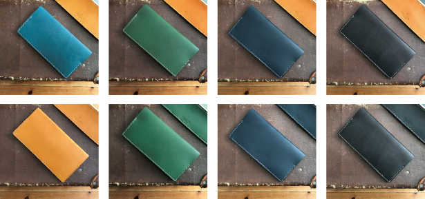 素材の本革は上質な栃木レザーを使用し、カラーバリエーションも「全8色」と豊富にご用意しました。ひとつずつ、私が手作業で作る「長財布」となります。