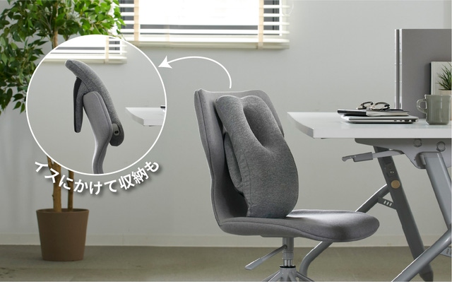 コンパクトに折り畳めます。使わない時は椅子に引っかけると邪魔になりません。
