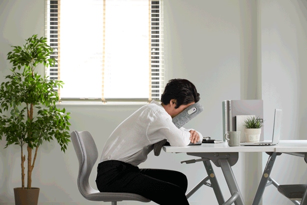 - 追求したのは心地良く眠れる姿勢!胸からお腹部分を机の縁部分までカバーしながら優しく支えます。
