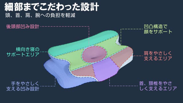 - 快眠設計で頭・首・肩・腕の負担を軽減。朝まで快適な眠りを実現!