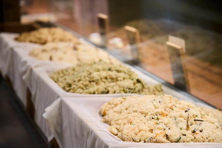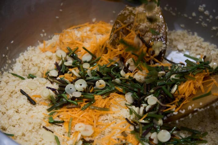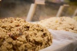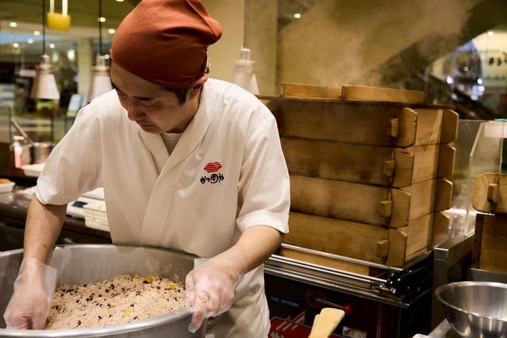 1時間以上もち米を水に漬け、保水させた後に適度に水を切り、まずは一蒸し。蒸しあがったもち米に出汁と具材を混ぜ合わせ、2回目の本蒸しで完成。しかし、この保水、水切り、蒸し、混ぜるというすべての工程で、職人による微妙なさじ加減、身体的な感覚の積み重ねが味を大きく左右します。