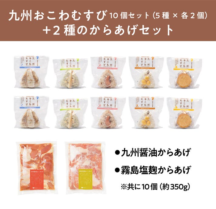 九州おこわむすび10個セット(5種×各2個)+2種のからあげセット
