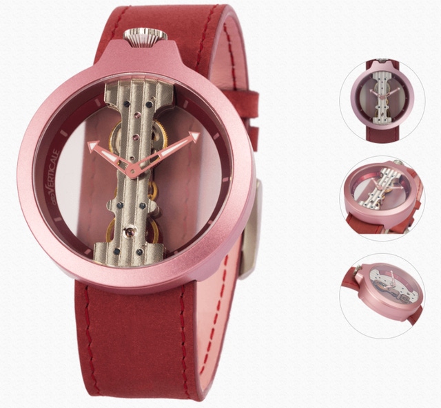 クラシックな手巻きの機械式ムーヴメントは、フレッシュでカラフルな時計ケースとストラップと完璧にマッチします。 両面のサファイアクリスタルの間に垂直輪列のムーブメントが浮かび上がり、時計にパワフルでユニークな個性を与えます