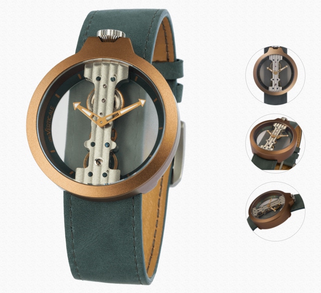 atto VERTICALE は、アルマイト処理されたカラフルなアルミニウムのケースに手巻きムーヴメントを組み合わせた、イタリア人工業デザイナーのユニークなアイデアから生まれたエキセントリックなコンセプトの腕時計です。