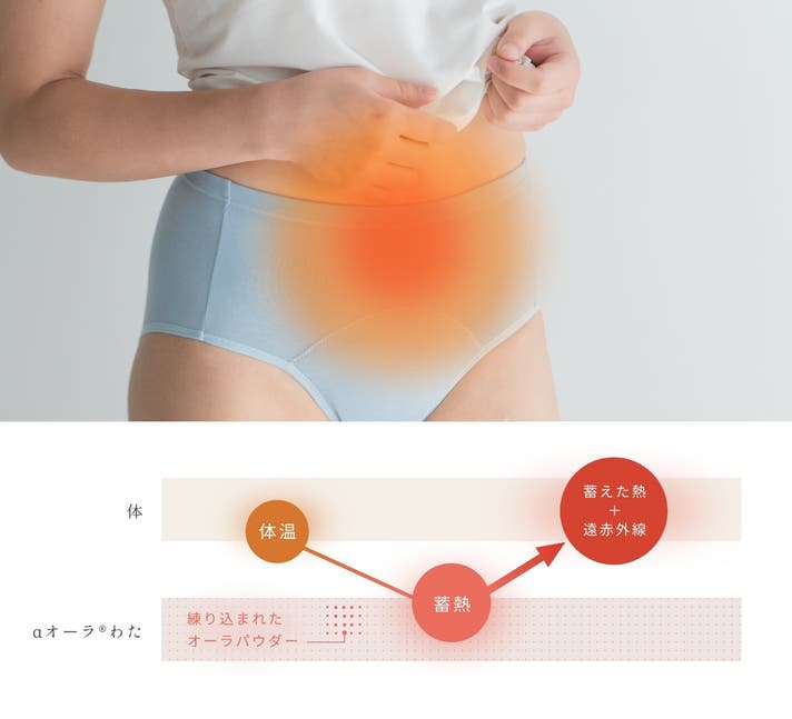 30年以上、カラダを温める製品を作り続けてきた私たちの技術や、体温で温まるαオーラ®繊維を、フェムケアに活かせないか。そんな想いと技術が結集して、「オーラtomoni吸水ショーツ」が誕生しました。