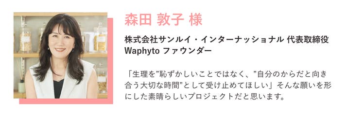 「生理を“恥ずかしいこと”ではなく、“自分のからだと向き合う大切な時間”として受け止めてほしい」そんな願いを形にした素晴らしいプロジェクトだと思います。
