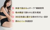 A. 身生地に使用している「αオーラ®︎繊維」は体温を熱源として温まるため、体温以上にあつくなることはありません。春・秋の寒暖差の季節や、冷房での冷えが気になる夏も快適に着用できます。また、吸水部は透湿性が高い生地を使用しているので蒸れにくく、季節を問わず快適にご使用いただけます。